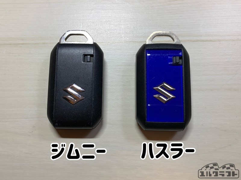 ぱっと見は、カラーが違うだけで同じように見えるジムニーとハスラーのスマートキーです。